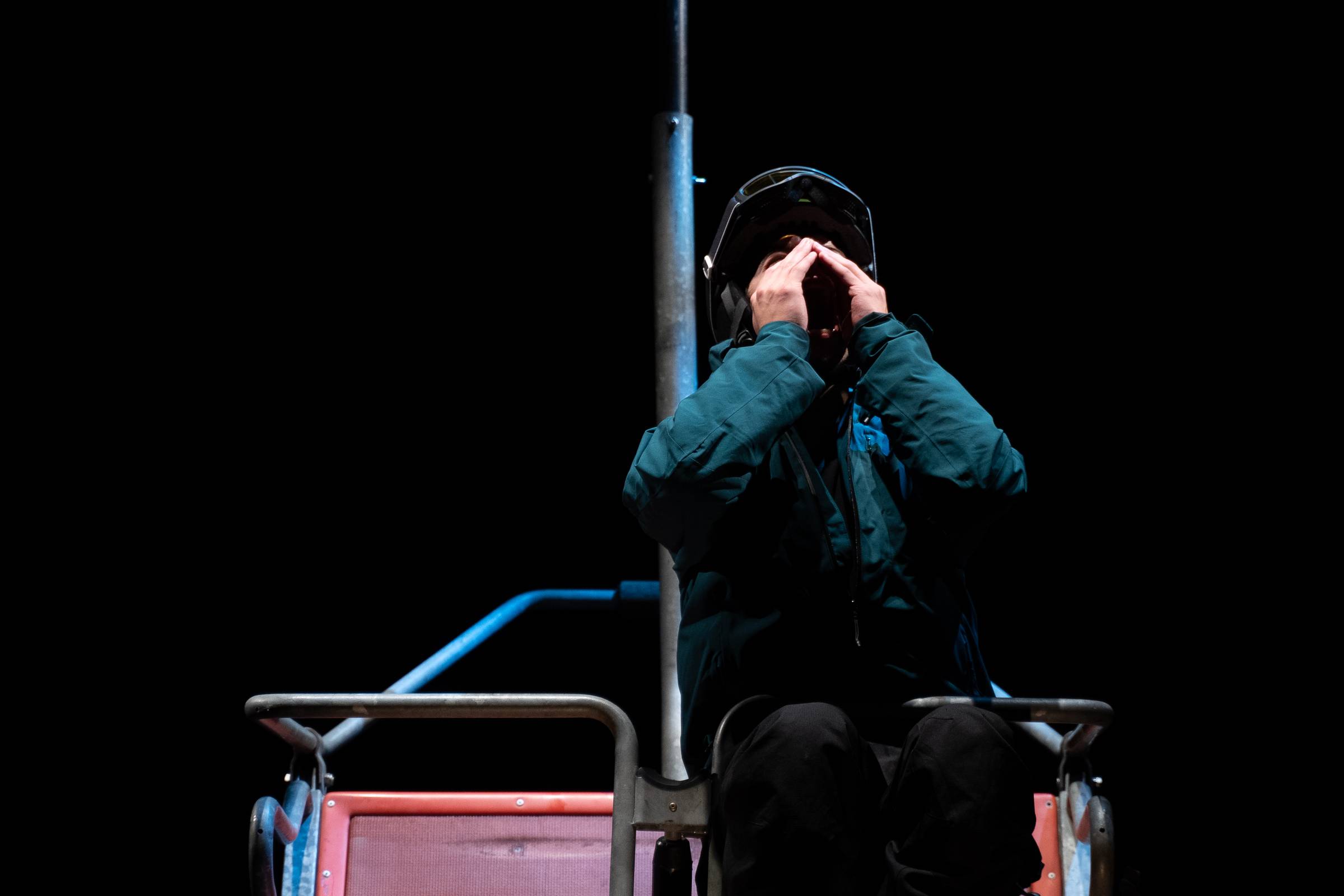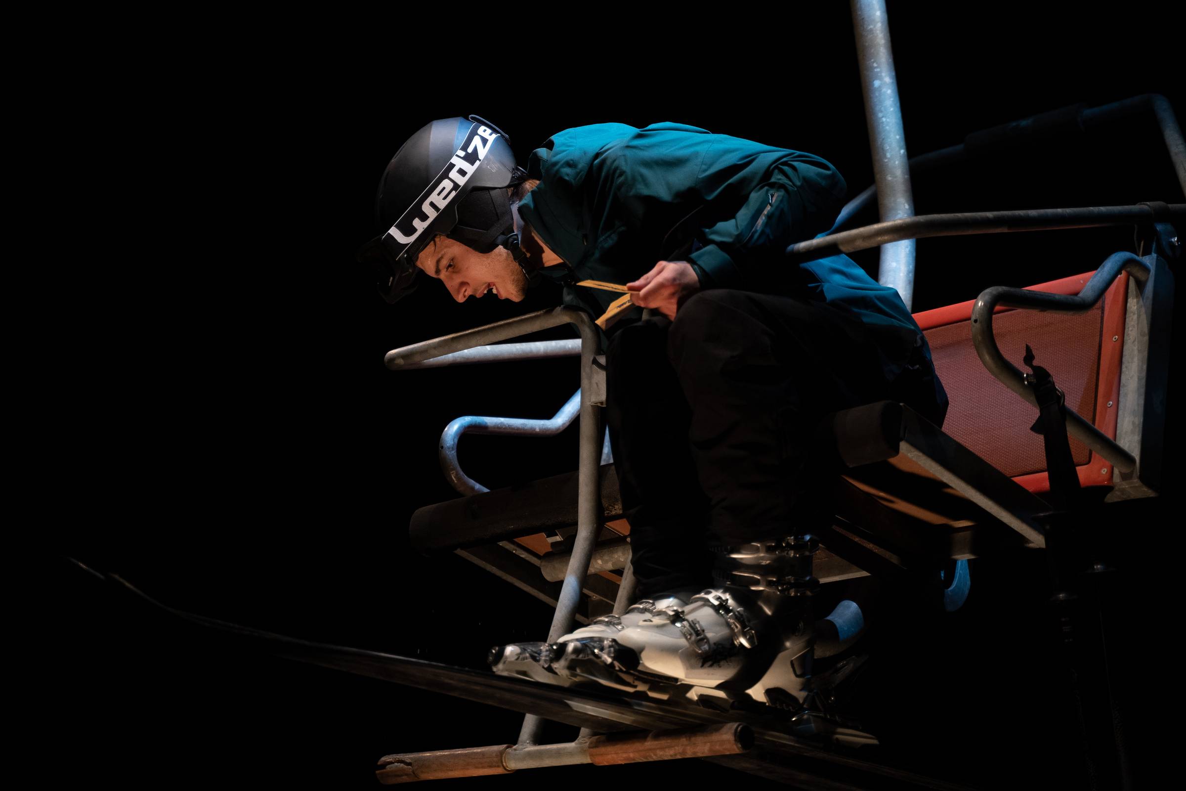 ascensiune oficială, singur pe telescaun. Activitatea liftului este oprită și