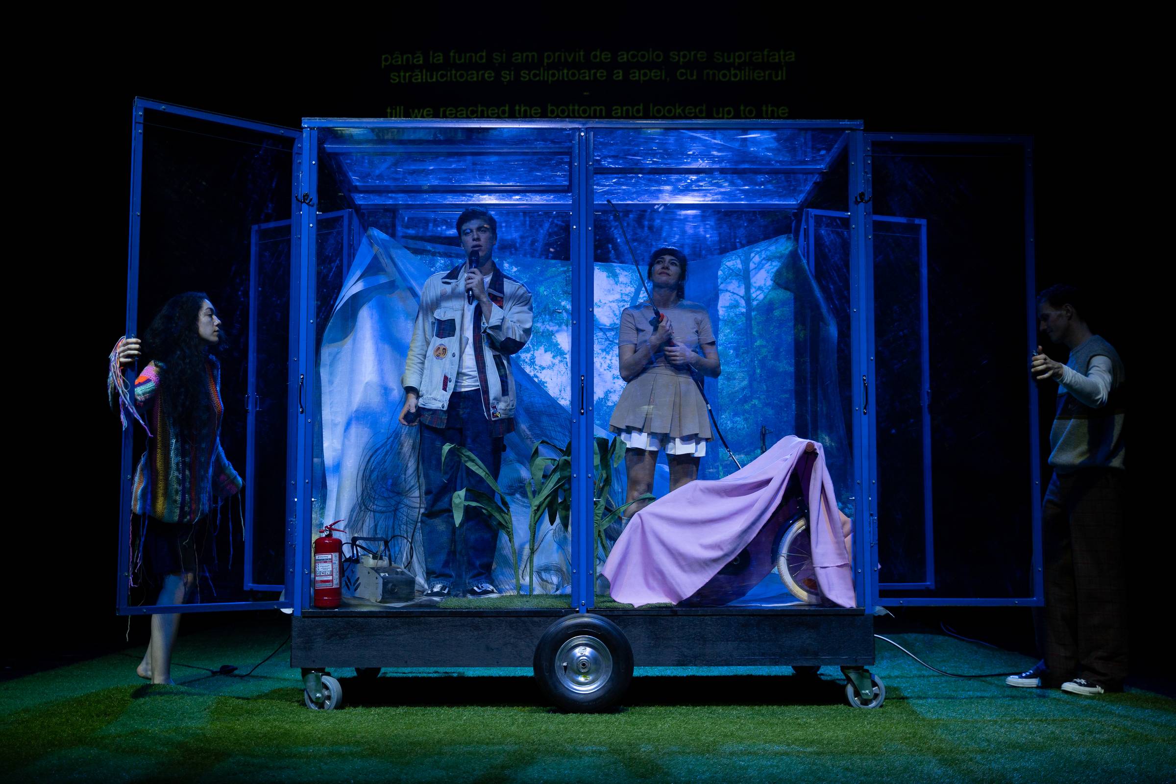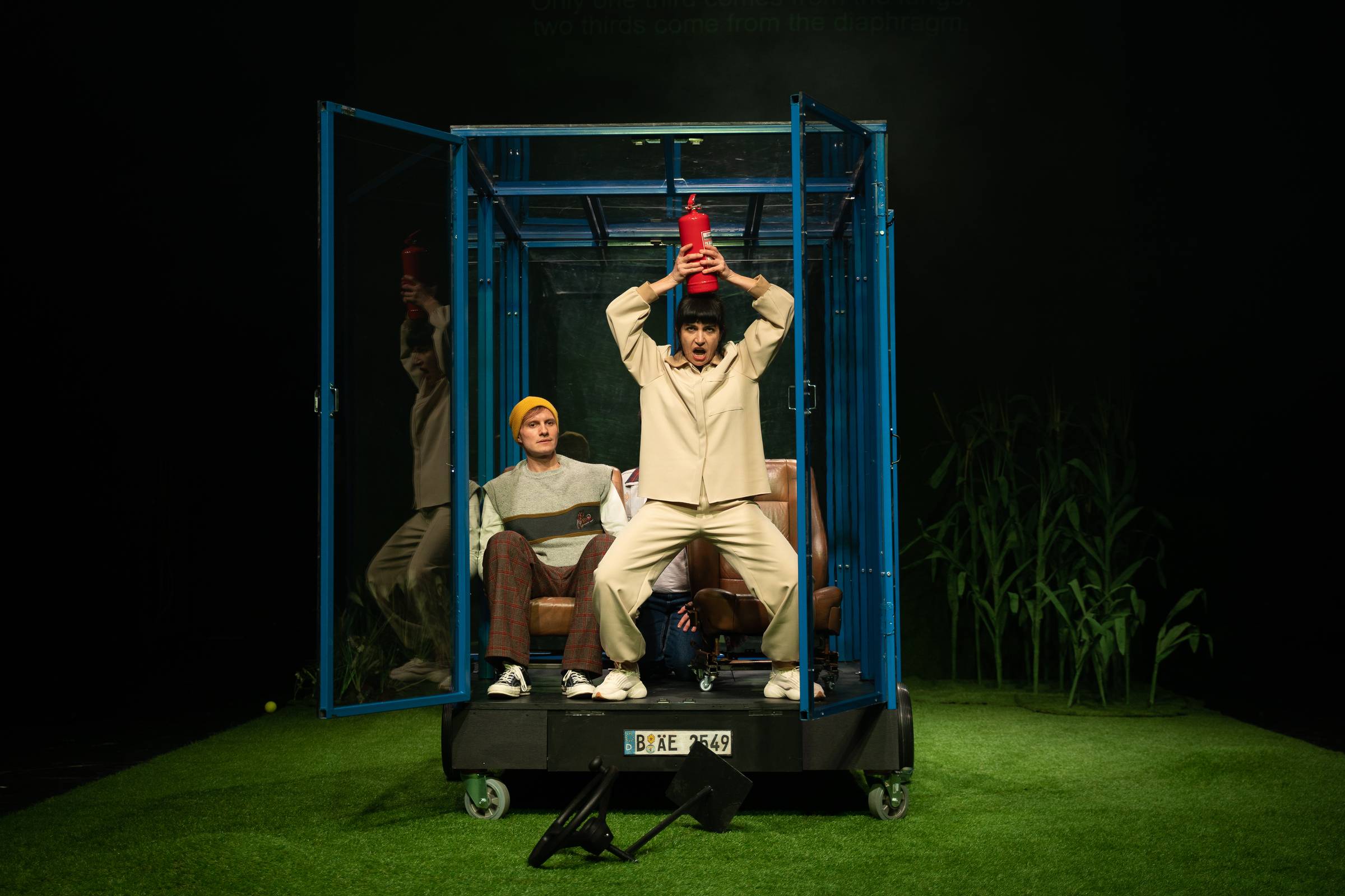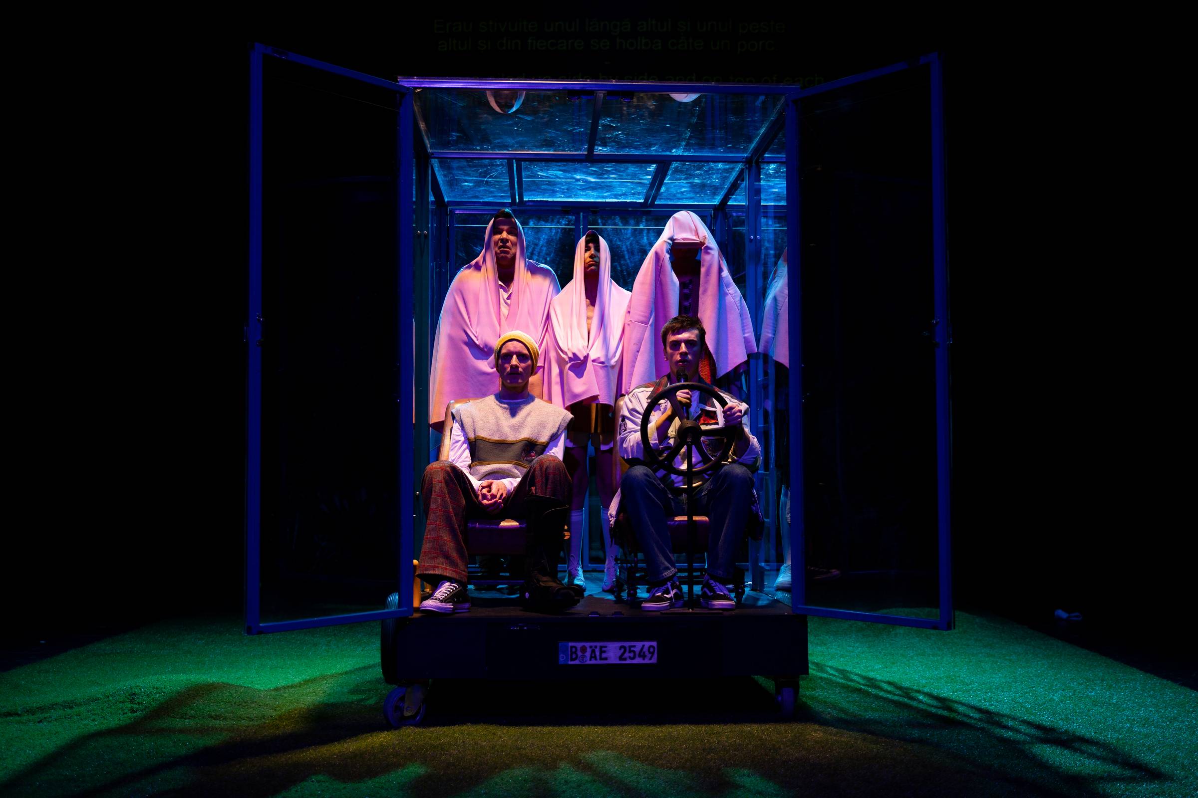 TschickDe ce am furat mașina e în regia lui Iris Kovacs, o mizanscenă cuminte, nu greșită, cu articulări logice, dar și cîteva rezolvări destul de naive. Cu actorie de calitate, regizoarea colaborînd frumos cu interpreții, unii dintre ei distribuiți în mai multe personaje. O narațiune cu și despre adolescenți, dar și despre adulții care-i povățuiesc, cu un aer intimist, plăcută de ascultat și de privit. Un roman scris de un matur, Wolfgang Herrndorf, adaptarea scenică Robert Koall, iar asta se simte la nivelul profunzimii în tratarea subiectului. De văzut, de gîndit la ce se întîmplă cînd dăm nas în nas cu viața și nu sîntem pregătiți să-i facem față.